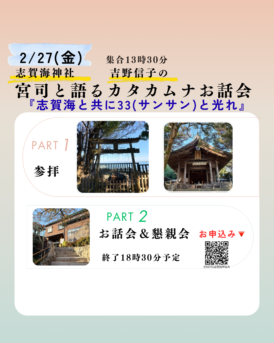 宮司と語る カタカムナお話会~志賀海と共に33(サンサン)と光れ~ |